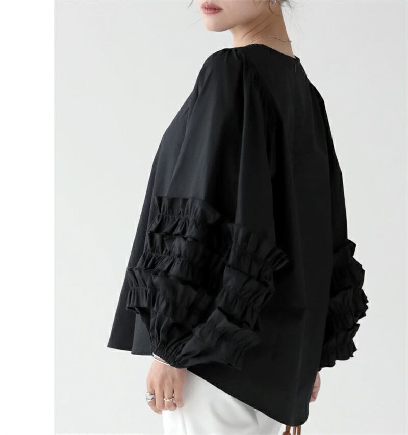 トップス シャツ 七分袖 ラウンドネック 体型カバー レディース 大人可愛い