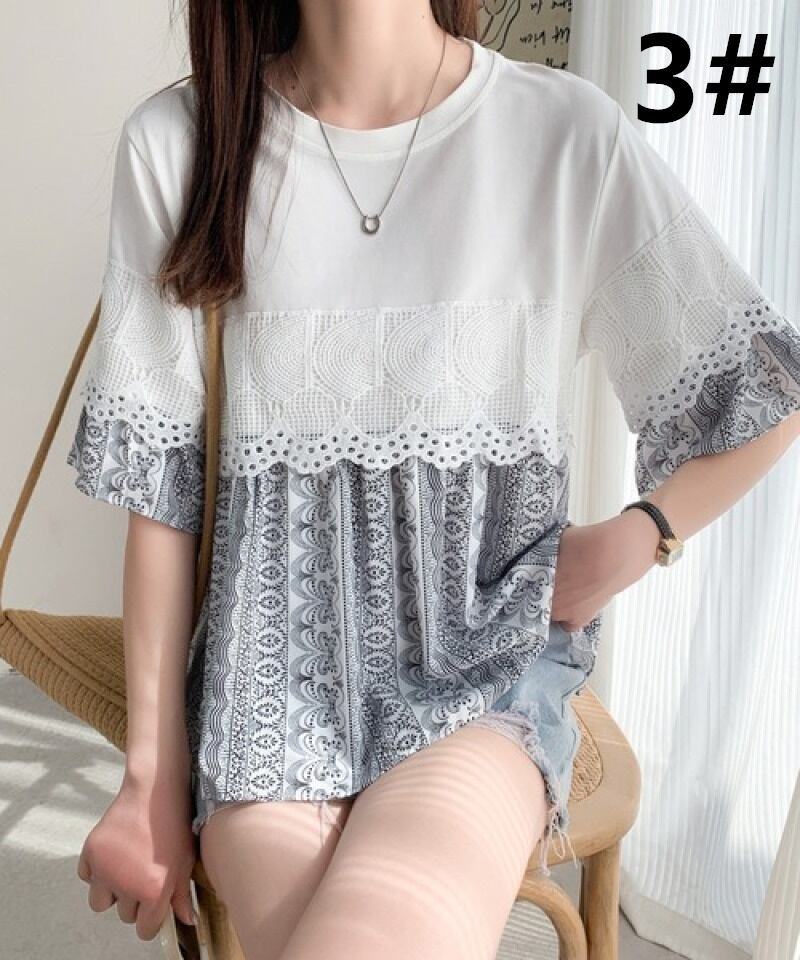 シャツ 半袖 トップス 体型カバー ラウンドネック レディース 大人可愛い