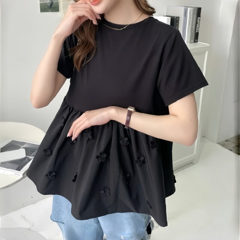 シャツ トップス 三分袖 ラウンドネック レディース おしゃれ 大人可愛い