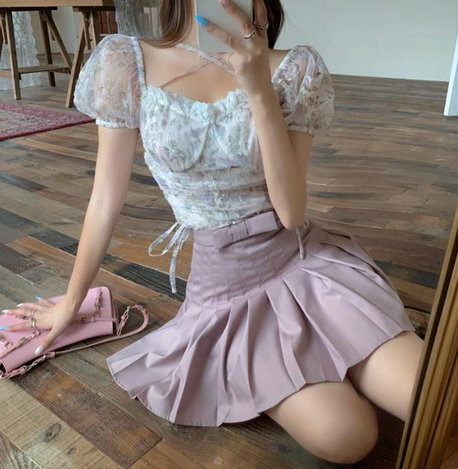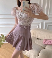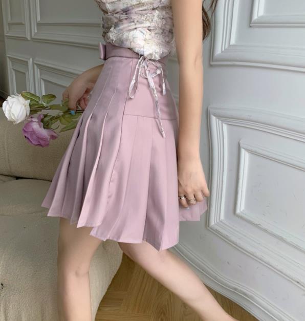 ハイウエスト 無地 ミニ スカート プリーツスカート