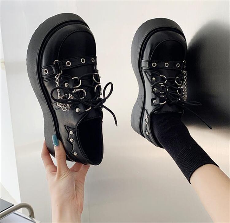 大好評レビュー続々 丸っこい小さめの靴 明るい皮 シューズ 厚底単靴 jk制服靴 メタルパンク風 ロリ