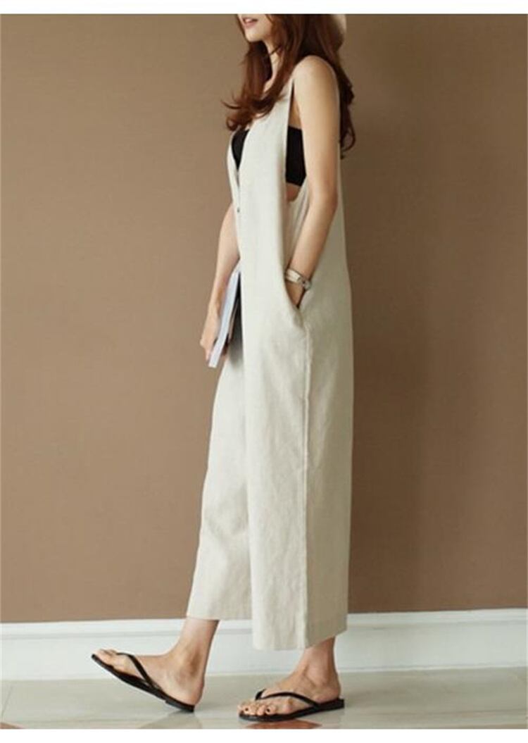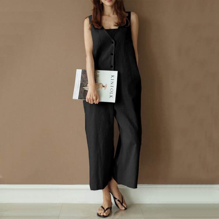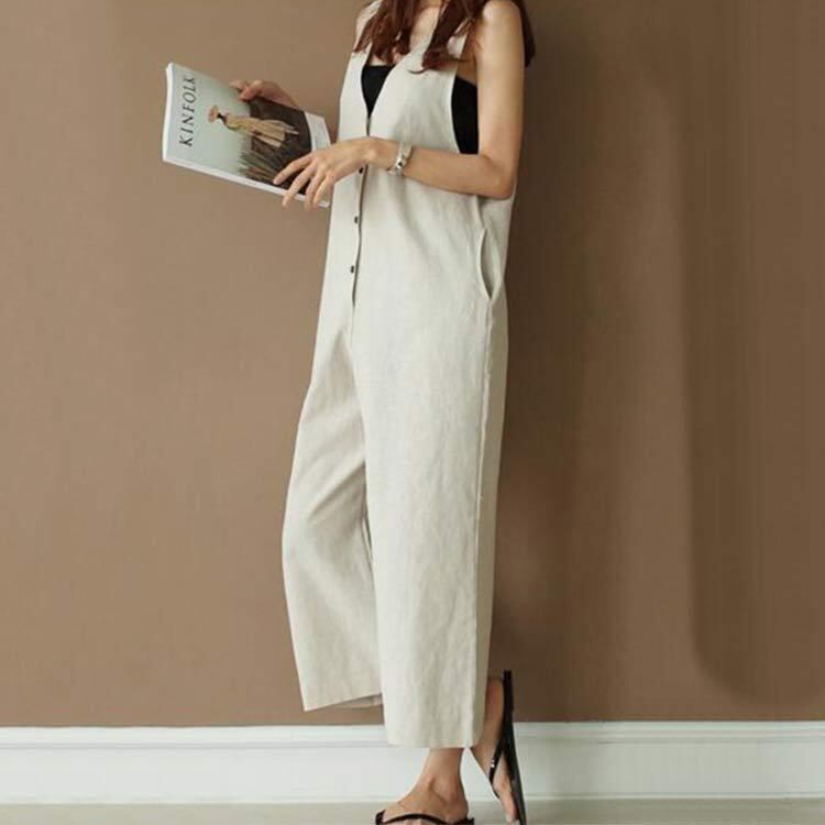 ロングパンツ スラックス カジュアルパンツ 袖なし Vネック コンビネゾン 大きいサイズ