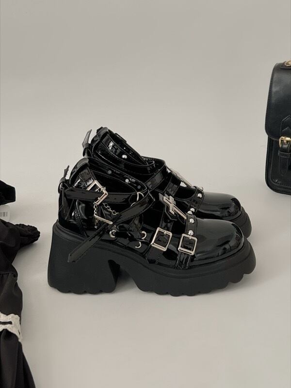 ローファー 厚底 パンプス PU フェイクレザー ベルト 革靴 レディース